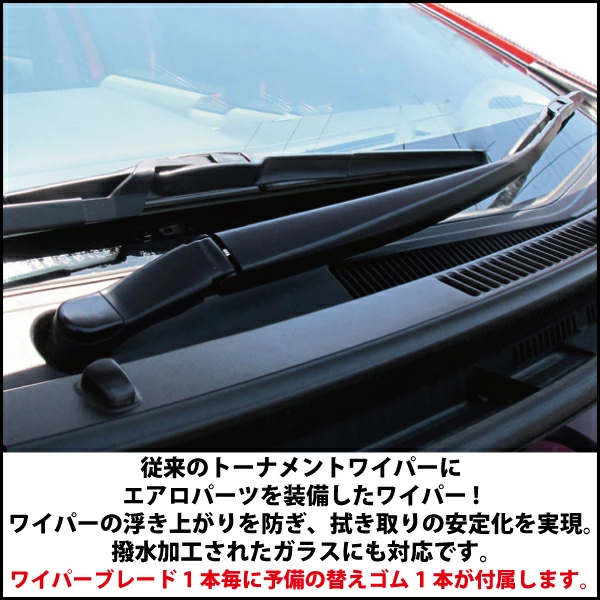 The latest designed equipped with aero parts. Stabilizes wiping and prevents the wiper from floating. Also compatible with water-repellent glass.
